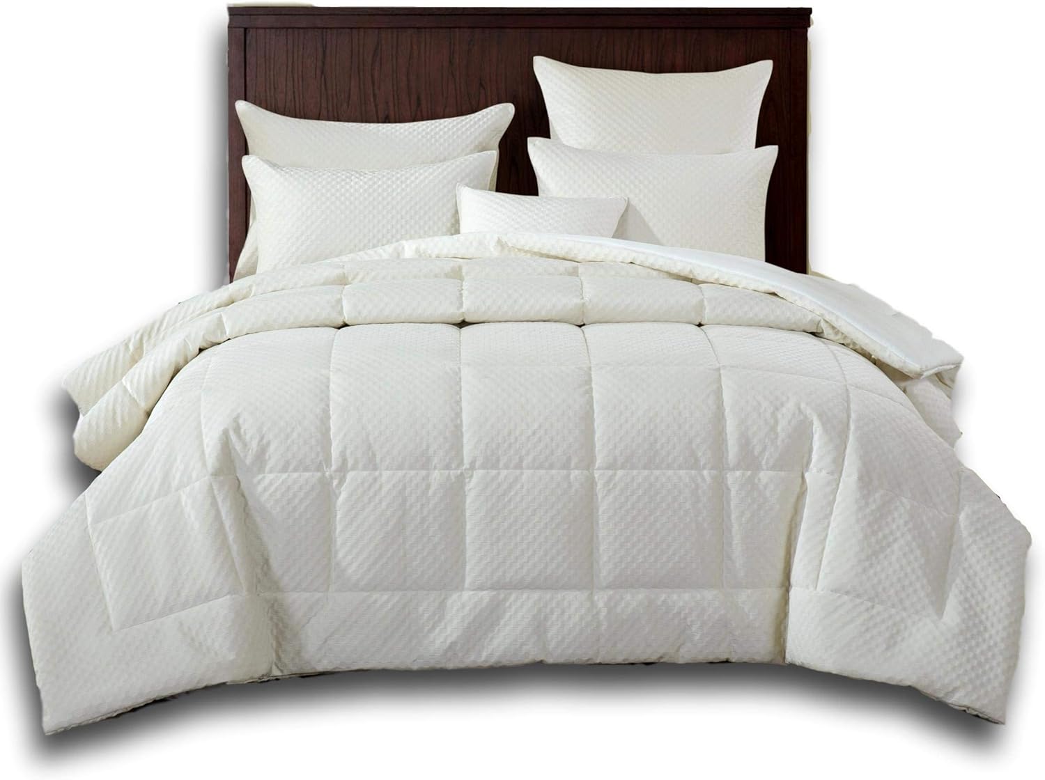 Sleep softly with our eggshell white toned comforter set for an elegant and natural look in your bedroom. Accented with unique 3D ultrasonic checkered square pattern design all over the comforter. Soft to the touch feeling will give you a luxurious night’s sleep. The backside of the comforter is a solid white soft background for a simplistic touch. Made with 100% polyester velvet fabric and contains 100% polyester needled filling created for your comfort for the softest and coziest material. Features: Ideal & perfect for all year long seasons use Medium-weighted comforter Soft to the touch Velvet Brand: DaDa Bedding Collection Made in China What’s Included? Available in Twin, Full, Queen, King & Cal King. Twin size set - includes One Comforter and One Standard Sized Sham Full size set - includes One Comforter and Two Standard Sized Shams Queen size set - includes One Comforter and Two Queen Sized Shams King/Cal King size set - includes One Comforter and Two King Sized Shams Dimensions: Twin Size Set – 70” W x 90” L & 1 PC Standard Sham – 20” x 26” Full Size Set – 86” W x 90” L & 2 PC Standard Shams – 20” x 26” Queen Size Set – 95” W x 95” L & 2 PC Queen Shams – 20” x 30” King Size Set – 108” W x 100” L & 2 PC King Shams – 20” x 36” Cal King Size Set – 102” W x 106” L & 2 PC King Shams – 20” x 36” Material: Fabric - 230gsm Velvet Polyester Filling - 100gsm Polyester Backside – 250gsm Polyester Washing Care Instructions: Machine wash with gentle cycle in cold water Do not bleach, tumble dry in low heat & remove promptly Line comforter to air dry for best results